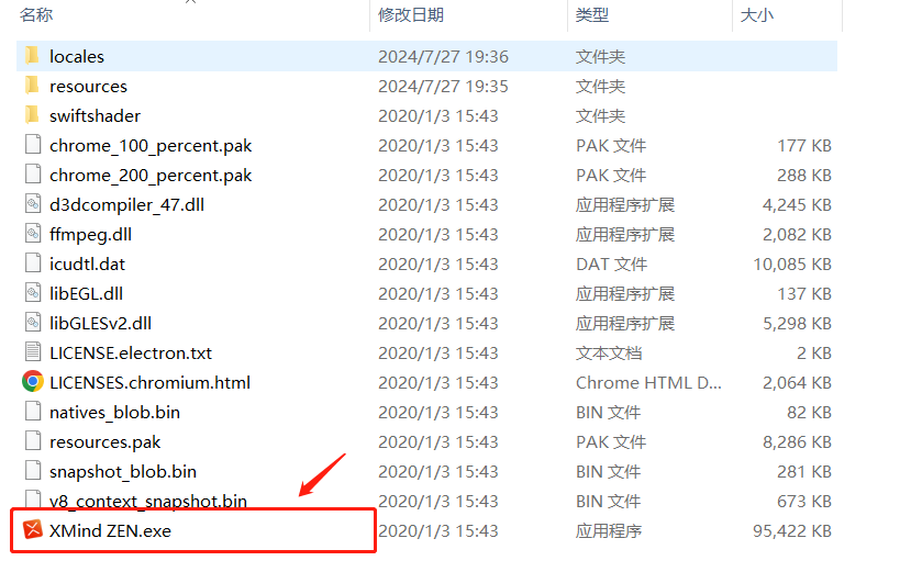 2、进入解压后的文件夹,找到XMind ZEN.exe,双击运行。